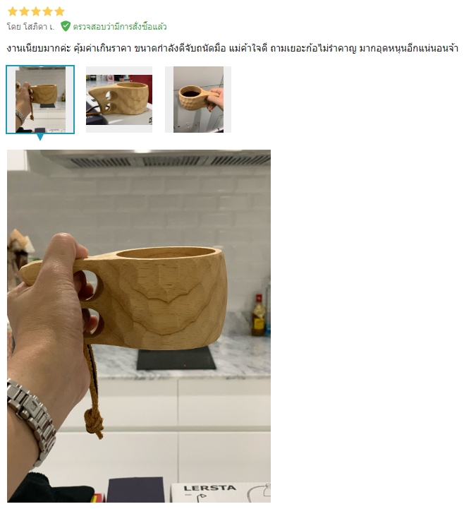 แก้วไม้แบบ Kuksa ของฟินแลนด์เป็นแก้วสไตล์แค้มปิ้ง แก้วเดินป่า ที่มีน้ำหนักเบา ทนทานต่อการใช้งาน ใช้งานได้เอนกประสงค์ อีกทั้งดีไซน์ที่หูแก้วเจาะช่องสำหรับสอดนิ้วมือเพิ่มความถนัดในการจับถือ ร้อยเชือกหนังแท้ที่หูแก้วสำหรับแขวนหรือห้อยกระเป๋าเมื่อใช้งานแบบพกพา จึงเป็นแก้วที่สายแค้มปิ้งหรือรักการเดินป่าไม่ควรพลาด