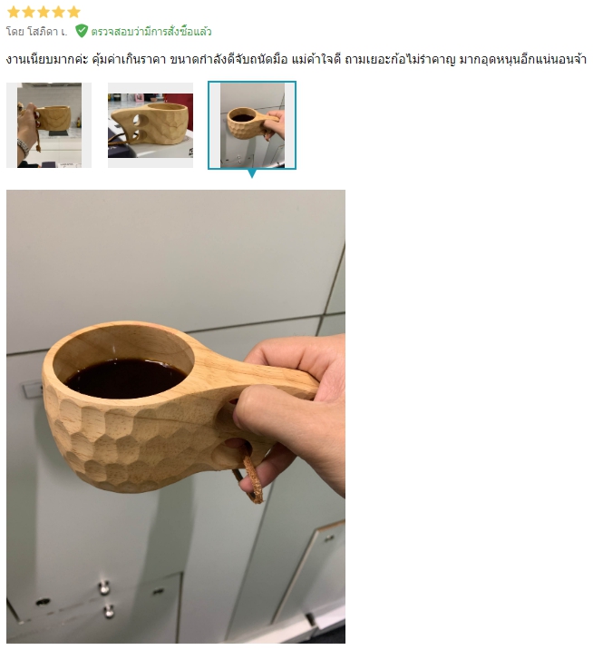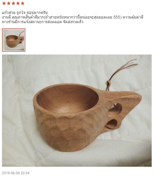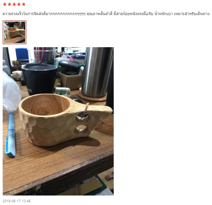 สีและลายไม้ของแก้วแต่ละใบจะต่างกันไปตามไม้ที่นำมาผลิต ดังนั้น แก้วที่ได้รับอาจจะมีสีหรือลายไม้ต่างไปจากรูปสินค้านะคะ